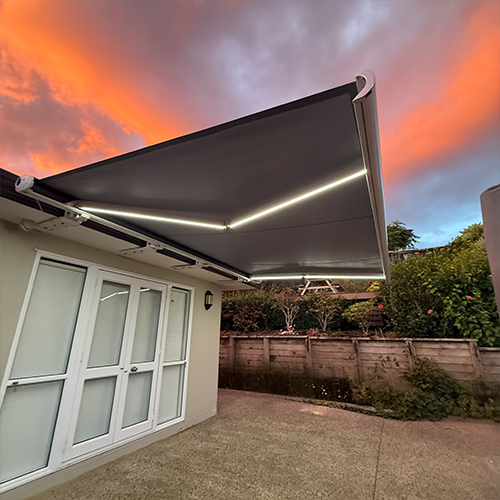 The retractable awning is an outdoor shading device used to block sunlight, wind, and rain, providing a comfortable environment.
