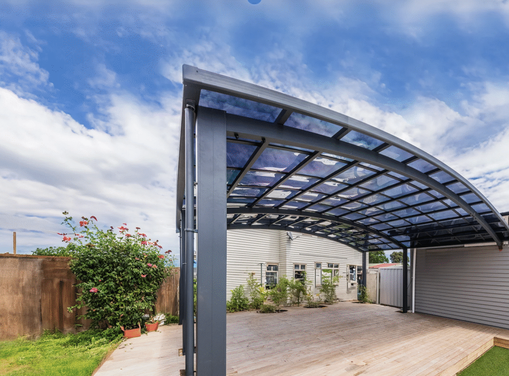 Arch canopy is a stunning addition to any property. The arched structure provides more outdoor space and this is a perfect design to cover your backyard, front of house and can be used for a car park space. The design can be customized and modified according to the requirements. The product is micro powder coated with five standard colour options. For roofing, poly-carbonate sheets are used which are 2mm in thickness. This will protect from sun, rain and hail. The product is designed to withstand the varying wind speed in New Zealand.