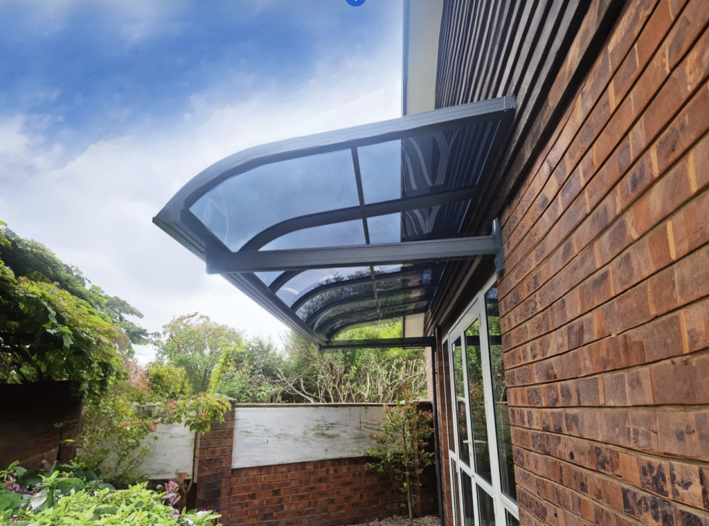 Curved Canopy is one of the most popular product in the market. The curved structure provides a multi functional role, as it provides an amazing finish for the product. The curved end blocks the water and sun rays coming through. It also provides a designer space to allow outdoor areas to be used all year around and can be customized according to the needs and design. Curved canopy is mounted against the wall of the property with a curved angle at the end, which is stylish and will let you use your outdoor space in various weather conditions. Frames are micro powder coated, and are available in different colours to match your property. Poly-carbonate sheet is used for roofing which is 2mm in thickness